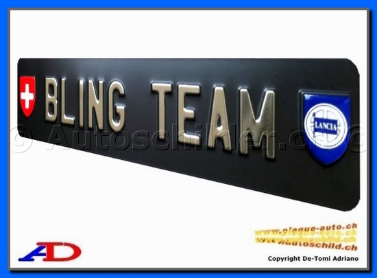 Material: Wie die offiziellen Schweizer Nummernschilder, Aluminium 1,5 mm, Schwarz matt Hintergrund. Geprägte Zeichen: 1234567890-ABCDEFGHIJKLMNOPQRSTUVWXYZ ! . ·